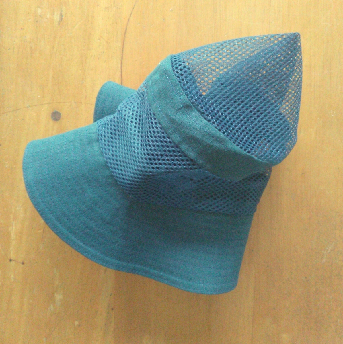 サイドクラウン(帽子の側面)のメッシュと布のぬいしろは折り伏せ縫いしました。